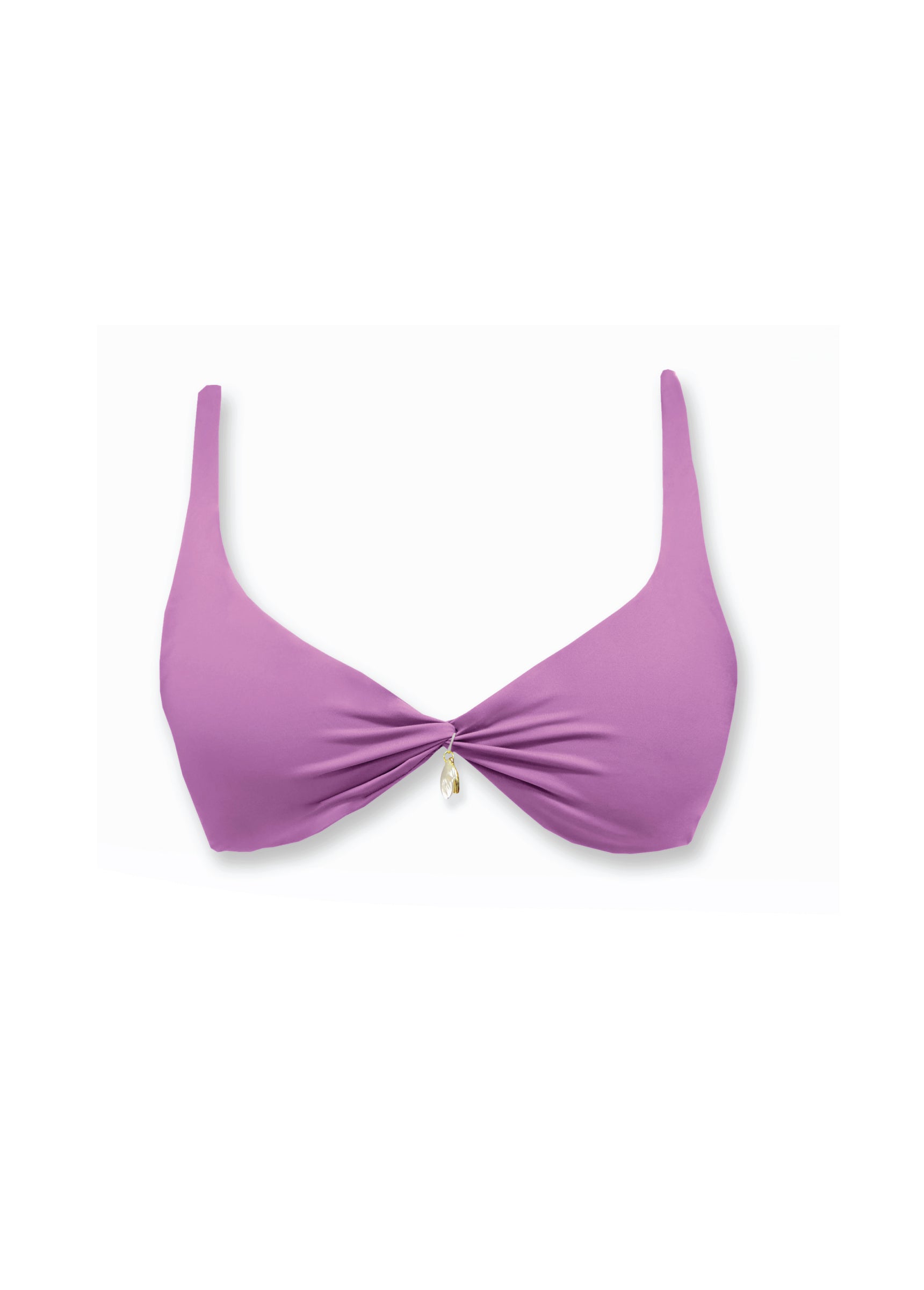 Ultra flattering bikini top with a twisted front, fixed chest for security and adjustable straps for comfort.